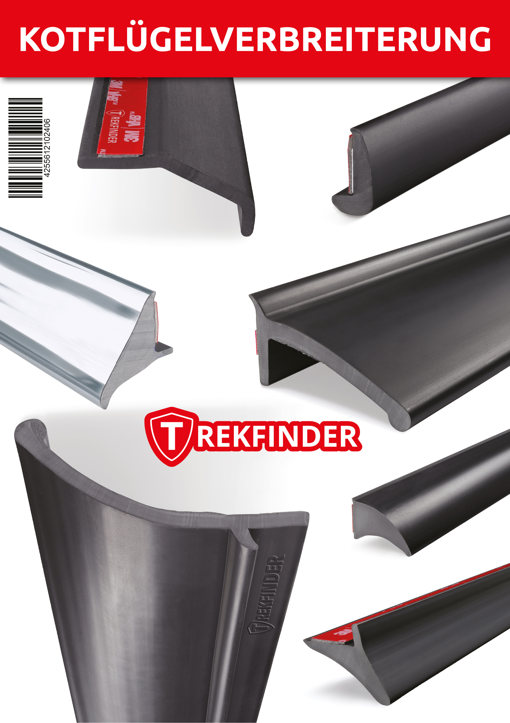 Für die TREKFINDER-Universal-Kotflügelverbreiterungen gelten jedoch andere Richtlinien, da sie ein flexibler Bestandteil des Spritzschutzsystems sind. Die Universal-Kotflügelverbreiterungen müssen lediglich eine festgelegte Härte und Festigkeit aufweisen und die Außenkanten müssen geprüft und zugelassen sein. Dies ist bei den TREKFINDER-Kotflügelverbreiterungen der Fall und ist in einem mitglieferten TÜV-Prüfbericht dokumentiert. Sie können also ohne Teilegutachten oder ABE angebracht werden, ohne dass die Betriebserlaubnis des Fahrzeuges erlischt.