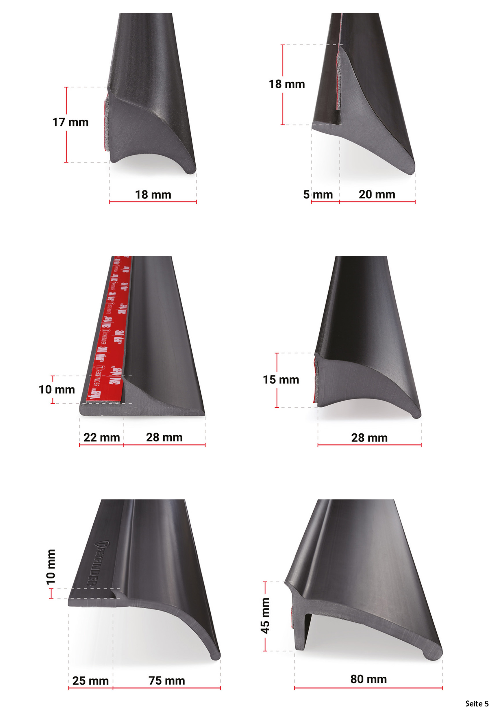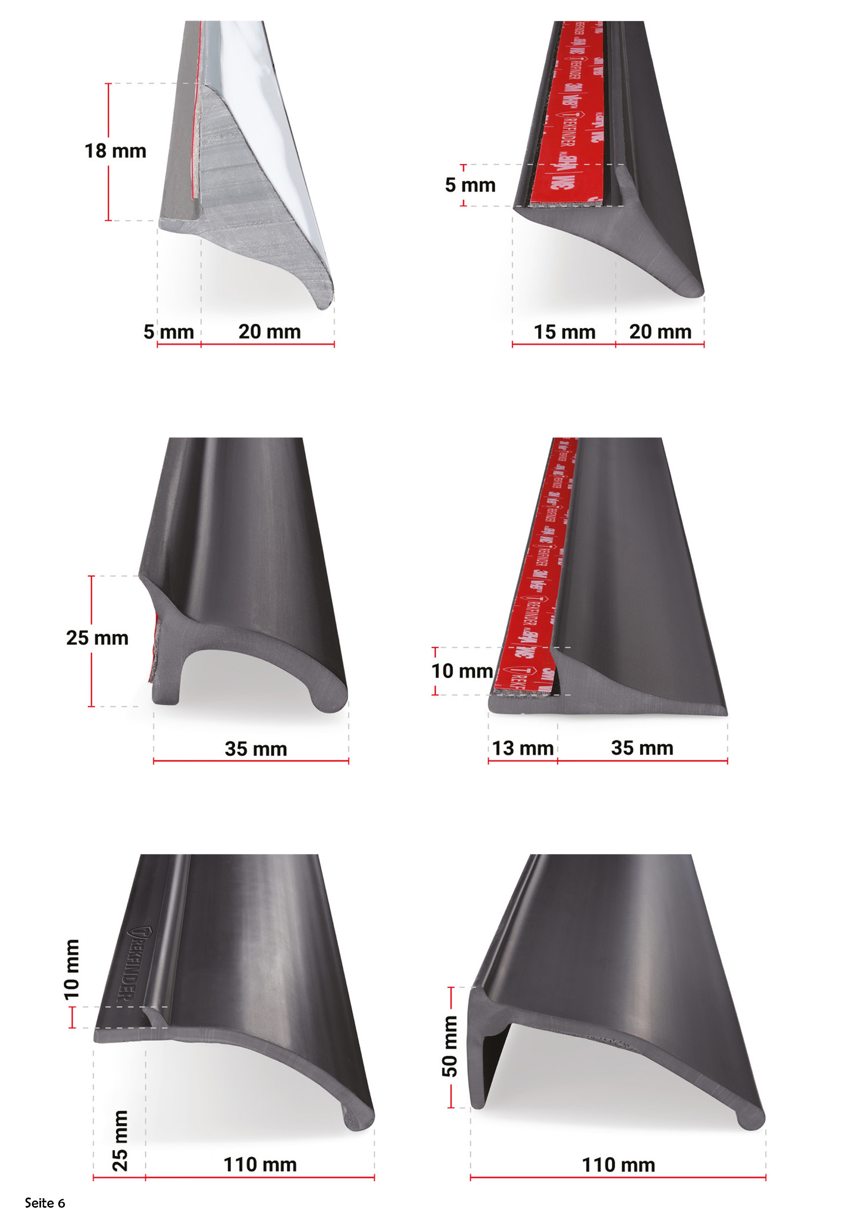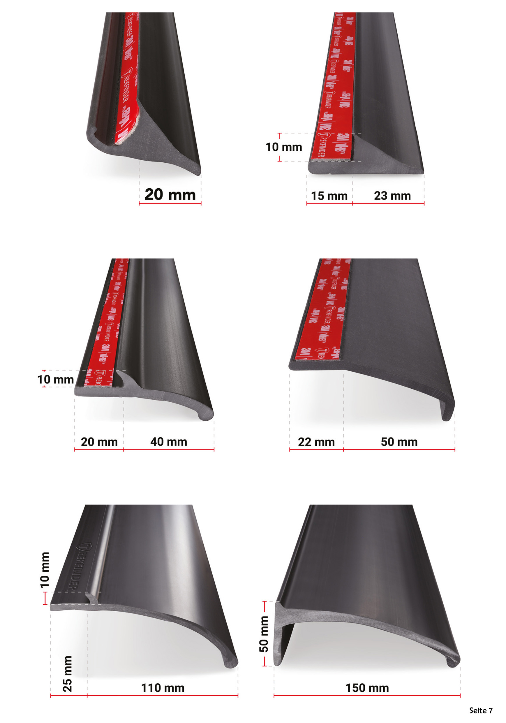 - die werksseitige Trägerfolie wird abgezogen und die Verbreiterung kann sicher auf die saubere Oberfläche/Stegkante geklebt werden